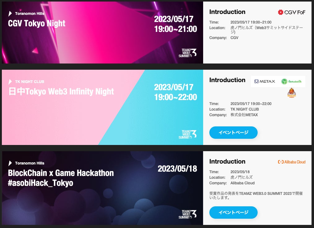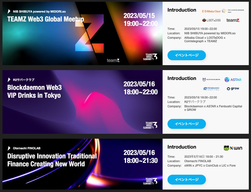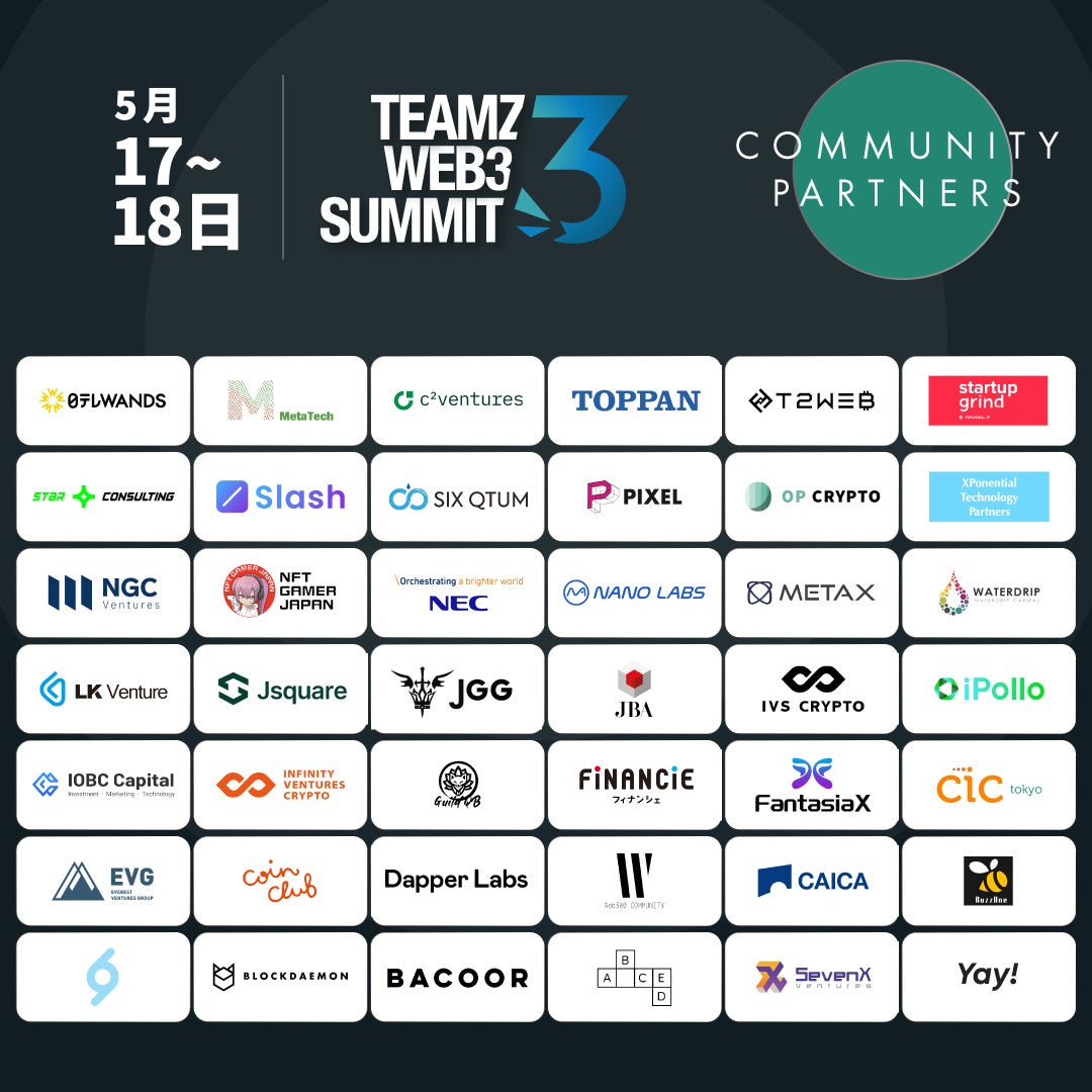 5月17日18日開催 TEAMZ Web3 Summit in TOKYO、世界中から全137社が参加決定!Tokyo Web3 Weekサイドイベントも続々と開催決定!