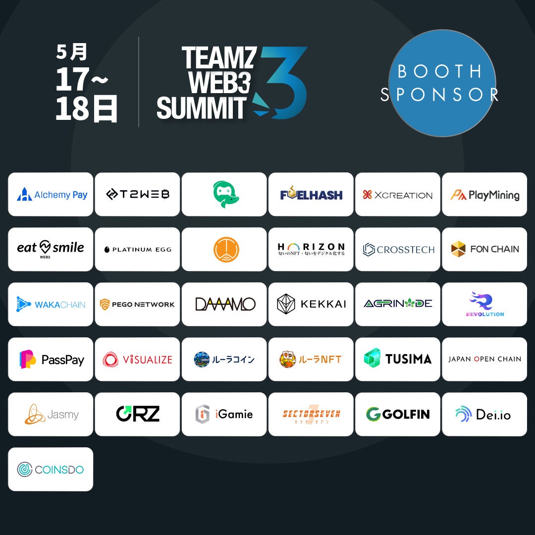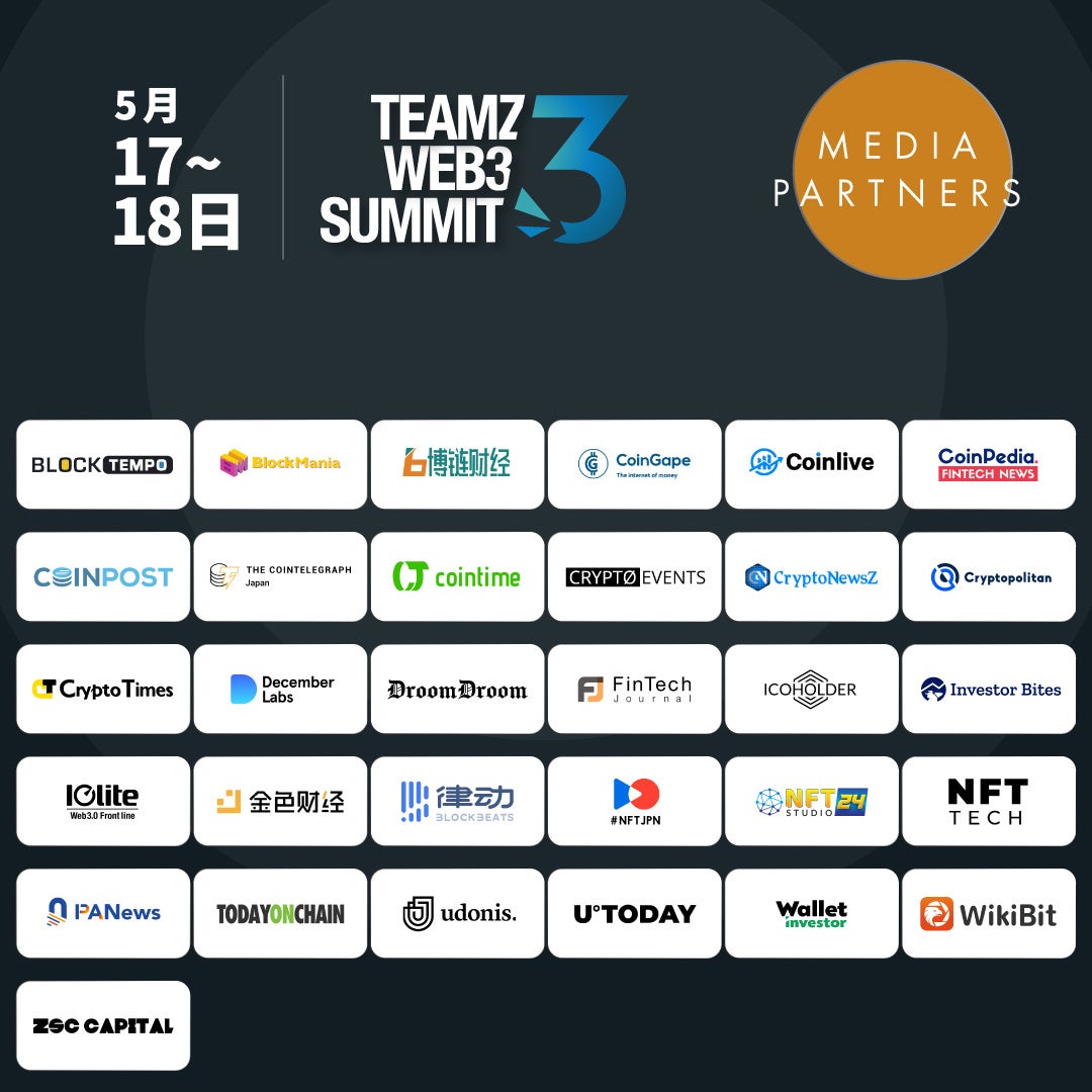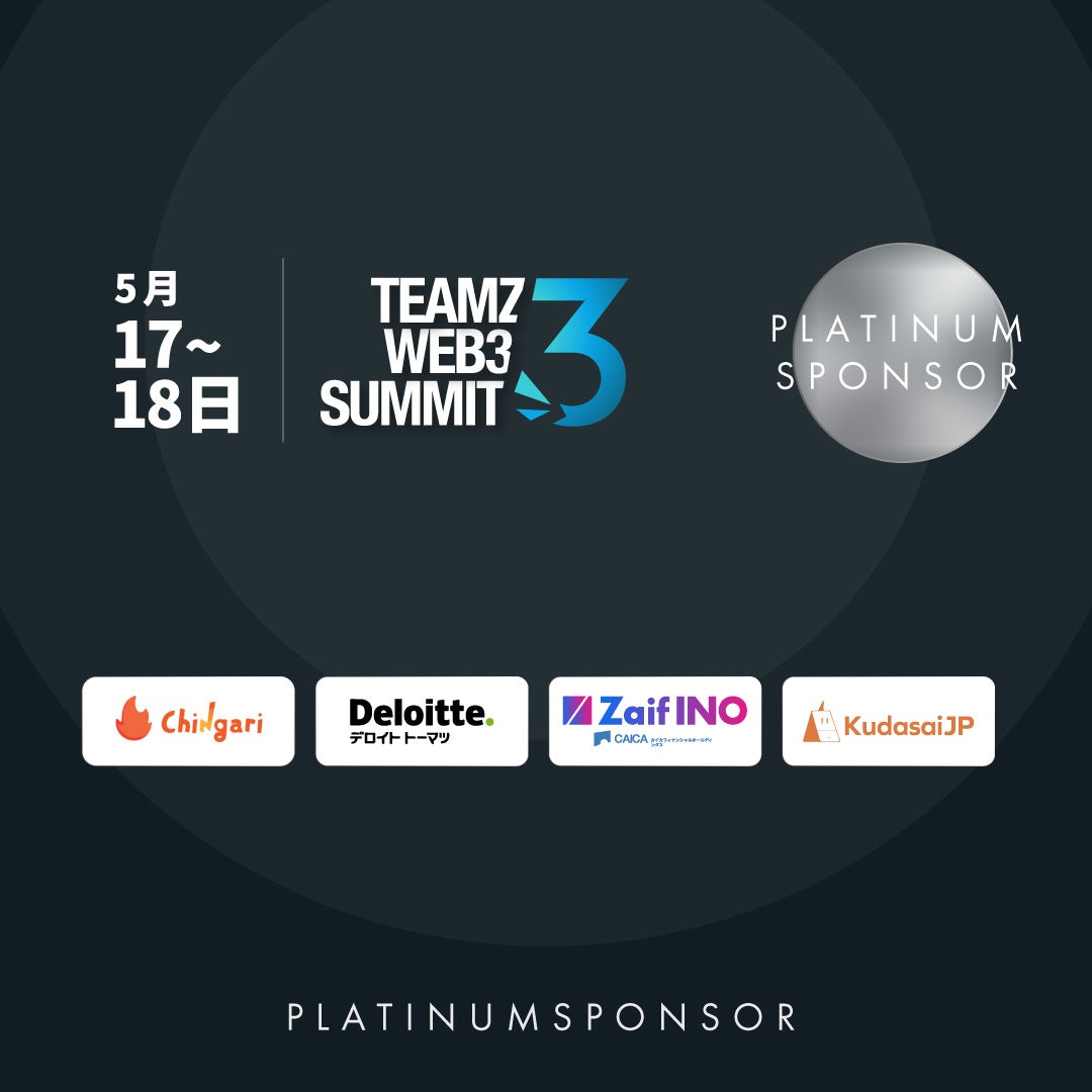 TEAMZ Web3 Summitは、ブロックチェーン業界のリーダーや専門家、投資家、デベロッパーなどが集まる、アジア最大のブロックチェーンイベントの一つである。今年は、5月17日から18日にかけて、東京・虎ノ門ヒルズフォーラムで開催される。https://web3.teamz.co.jp/