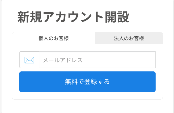 メールアドレスの入力欄の上にタブがあるので、法人口座を開設する際は「法人のお客様」のタブへ切り替えてからメールアドレスを入力してください。
