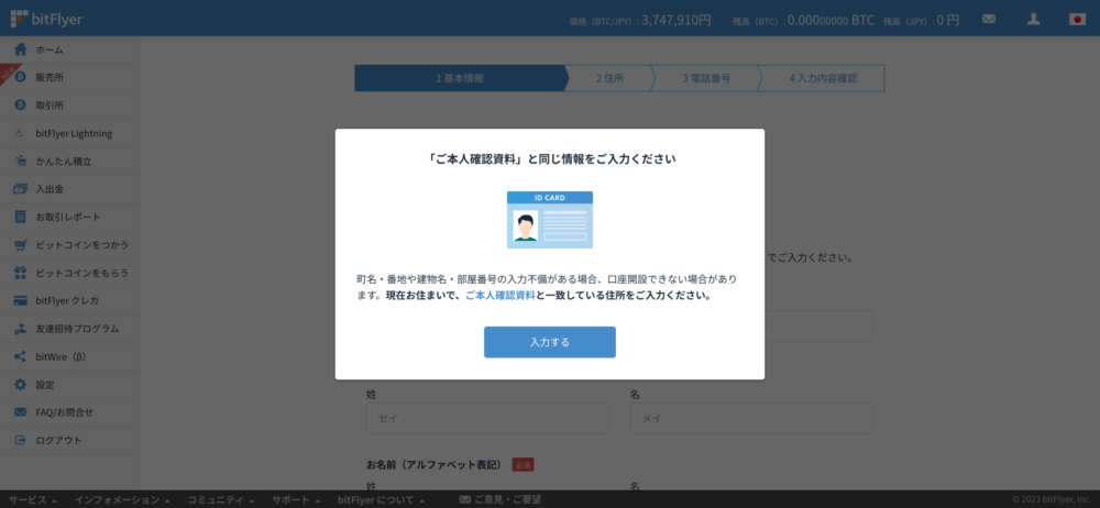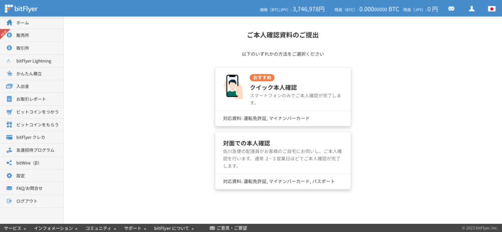 メールアドレスがあればログインはできるようになりますが、ビットフライヤーの各サービスを利用するには本人確認書類を提出しなければなりません。