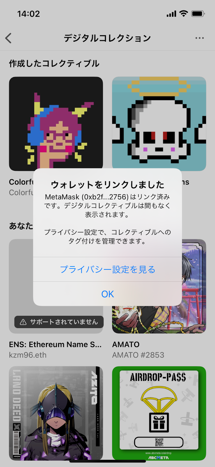 STEP③:デジタルコレクションから『ウォレットをリンク』をタップする